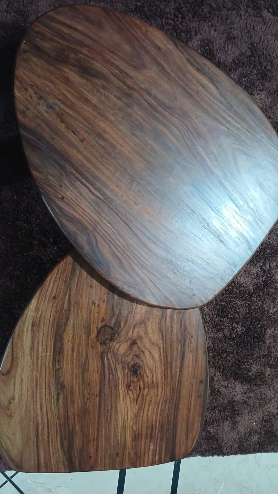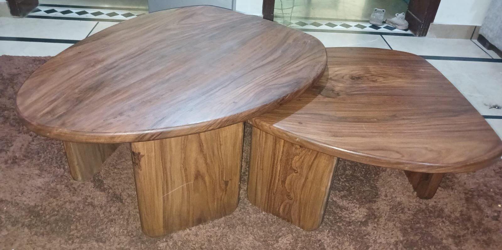 Crafted from solid Sheesham wood, this elegant set of two low tables blends organic warmth with modern minimalism — perfect for creating a cozy and stylish living room.